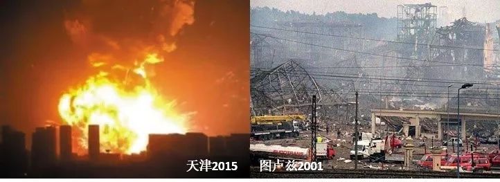 另外一则事故是,2001年9月,位于法国西南部工业城市图卢兹的AZF化工厂发生强烈爆炸,事故造成31人死亡和2500人受伤。时任图卢兹市市长事后表示,此次事故说明图卢兹市民实际上是在“与炸弹同眠”。