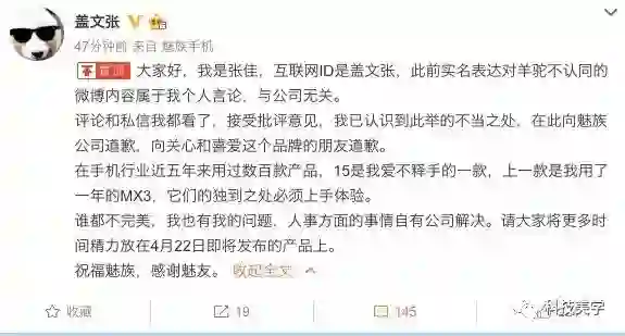 评论和私信我都看了,接受批评意见,我已认识到此举的不当之处,在此向魅族公司道歉,向关心和喜爱这个品牌的朋友道歉。