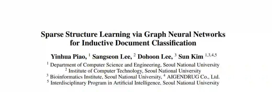 近年来,图神经网络在文献分类中得到了广泛的应用。然而,现有的方法大多是基于没有句子级信息的静态词同现图,这带来了三个挑战:(1)词的歧义性(2)词的同义性(3)动态上下文依存。为了解决这些问题,我们提出了一种新的基于GNN的稀疏结构学习模型用于文档分类。具体地说,文档级图最初是由句子级词同现图的断开并集生成的。模型收集了一组可训练的连接句子间不相连词的边,利用结构学习对动态上下文依赖的边进行稀疏选取。具有稀疏结构的图可以通过GNN联合利用文档中的局部和全局上下文信息。在归纳学习中,将改进后的文档图进一步输入到一个通用的读出函数中,以端到端方式进行图级分类和优化。在几个真实世界数据集上的大量实验表明,提出的模型优于最先进的结果,并揭示了学习每个文档稀疏结构的必要性。