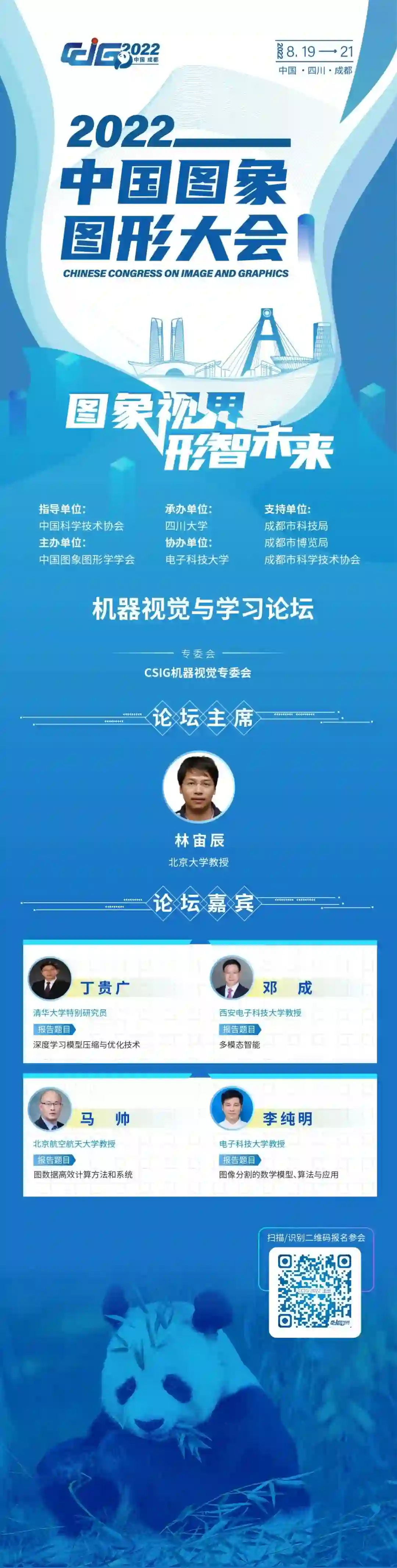 在CCIG 2022期间,会议将举办机器视觉与学习论坛,论坛信息如下。