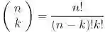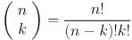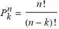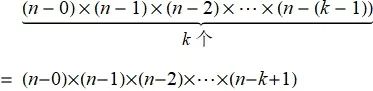 由上面置换的阶乘公式也可以得到求从 n 种事物取出 k 种排列的总数: