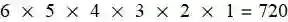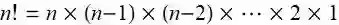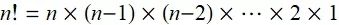 这样递减整数相乘称为阶乘(factorial). 因此, 把 n 个事物排列, 共有下面种摆法.