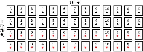 比如, 在一副扑克牌中, 有 4 种花色, 而每种花色又有 13 张, 这里计数就需要乘法法则.