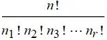 我们还能进一步推广组合公式. 如果为 n 个对象, 其中包括第一组 n1 个对象 , 第二组 n2 个对象, 第三组 n3 个对象.... , 则排列数目计算公式, 称之为多项式系数()multinomial coefficient):