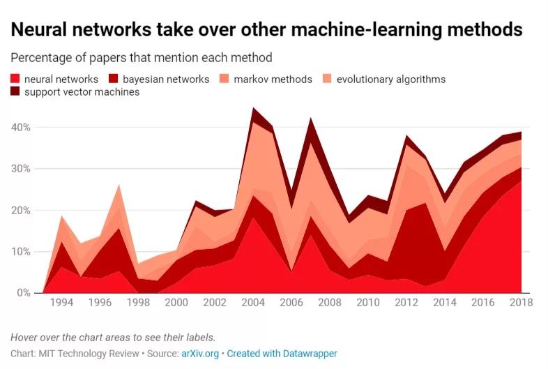 《麻省理工科技评论》的报告发现,在20世纪90年代末至21世纪初的这段时间里,人工智能学者的目光渐渐转向了机器学习。