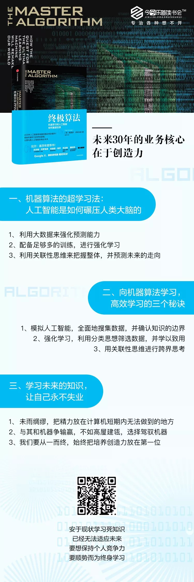 机器学习是研究如何使用机器来模拟人类学习活动的一门学科。它有许多不同的形式,比如:模式识别、统计建模、数据挖掘、知识发现、预测分析,等等都是机器学习的范畴。所谓“终极算法”是作者的一种构想,在《终极算法:机器学习和人工智能如何重塑世界》这本书中,作者说,“所有知识,无论是过去的、现在的,还是未来的,都有可能通过某种通用的学习算法,而从数据中获得,这就是终极算法”。简单来说,算法本身早已和我们的生活息息相关了,当我们打开手机或电脑时,各种推送、各种点评,背后其实全是算法在起作用。