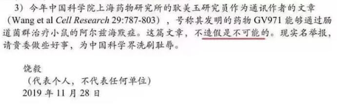 在文章中,饶毅提醒读者:耿美玉团队已经发表了12篇关于GV971或与GV971相关的论文(其中7篇原创研究,5篇评论文章),但耿美玉团队2019年10月发表的关于GV-971的研究对于之前发表的这12篇论文却一篇也没有引用。