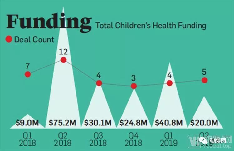 在这11个细分赛道里,今年上半年跑得最慢的要数儿童健康领域和成瘾治疗领域,分别只有9笔和5笔交易,交易额分别是6080万美元、6960万美元。