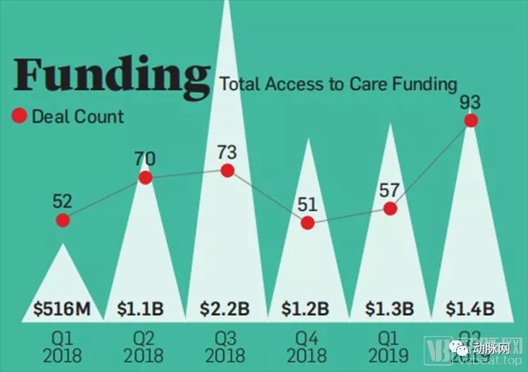 在“医疗服务可及性”这个领域,从2018年上半年(2018Q1、2018Q2)到2019年上半年(2019Q1、2019Q2)的融资增长了67%,交易数量增长了23%。