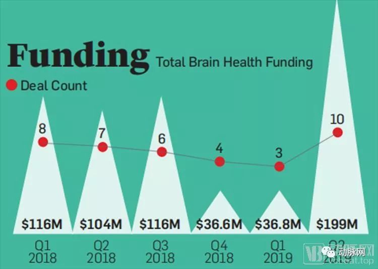 在“大脑健康”领域,从2018年第四季度开始融资资金几乎一直滞后,到了今年第二季度才有所反弹。从BlackThorn Therapeutics的神经类药物开发,再到Savonix的数字化神经认知测试,该领域完成了一系列总值为2亿美元的融资。