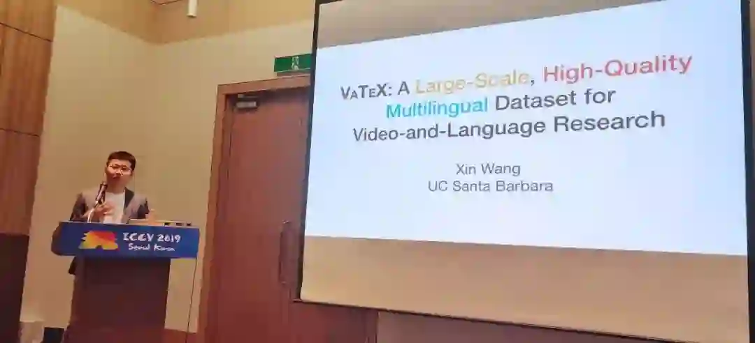 王威廉组的王鑫就以第一作者的身份获得了 CVPR 2019 的最佳学生论文奖。近期的 ICCV 2019 上,王鑫也有一篇第一作者论文被收录。从论文主题来看,王鑫对多模态、多语言学习有不少心得,AI 科技评论记者在 ICCV 2019 现场对王鑫进行了采访,请他介绍介绍相关话题。