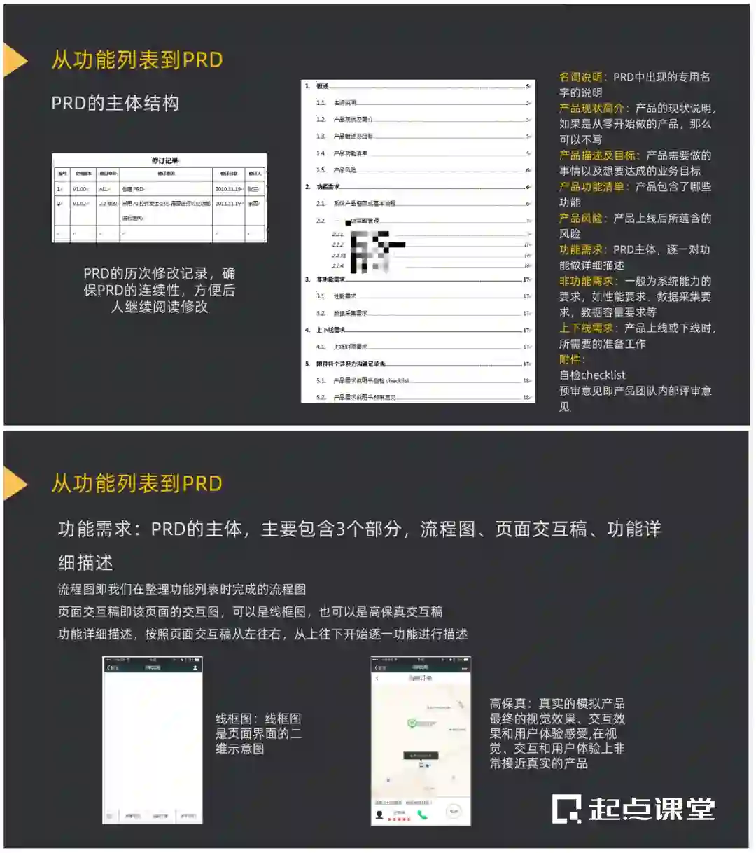 包括如何从需求转换为流程,如何按照流程产出功能列表,以及如何根据功能列表撰写PRD。