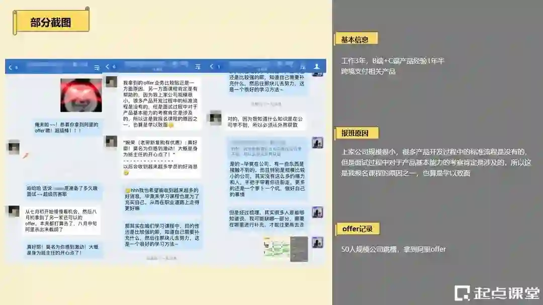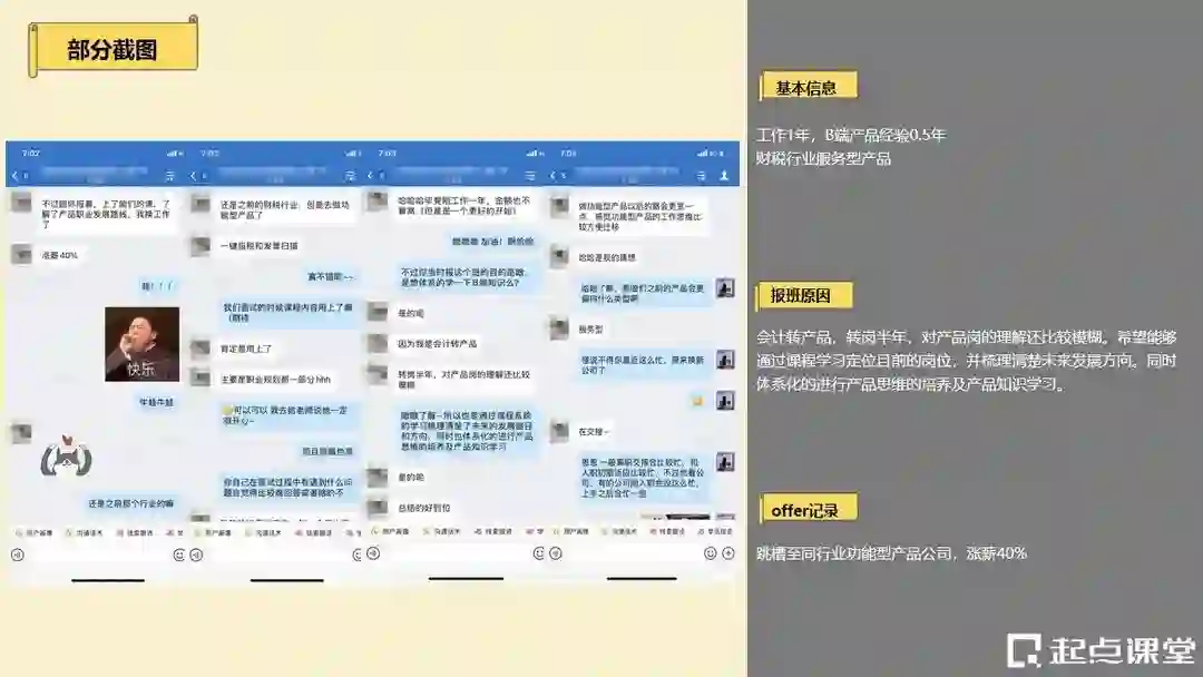 课程考虑到B端业务场景的复杂性,除了日常答疑,每周四还配有产品业务咨询会,授课老师会在班级群里给大家专门开小灶,通过语音直播的形式,帮助大家解决在工作中的具体产品/业务问题~