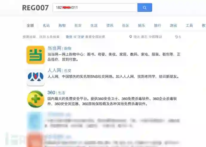 在REG007搜索任意手机号