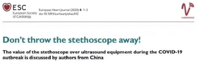 3.Jian Zhu, Yan Tan, Bin Huang, et al. Don’t throw the stethoscope away! The value of the stethoscope over ultrasound equipment during the COVID-19 outbreak is discussed by authors from China. Eur Heart J. 04 May 2020