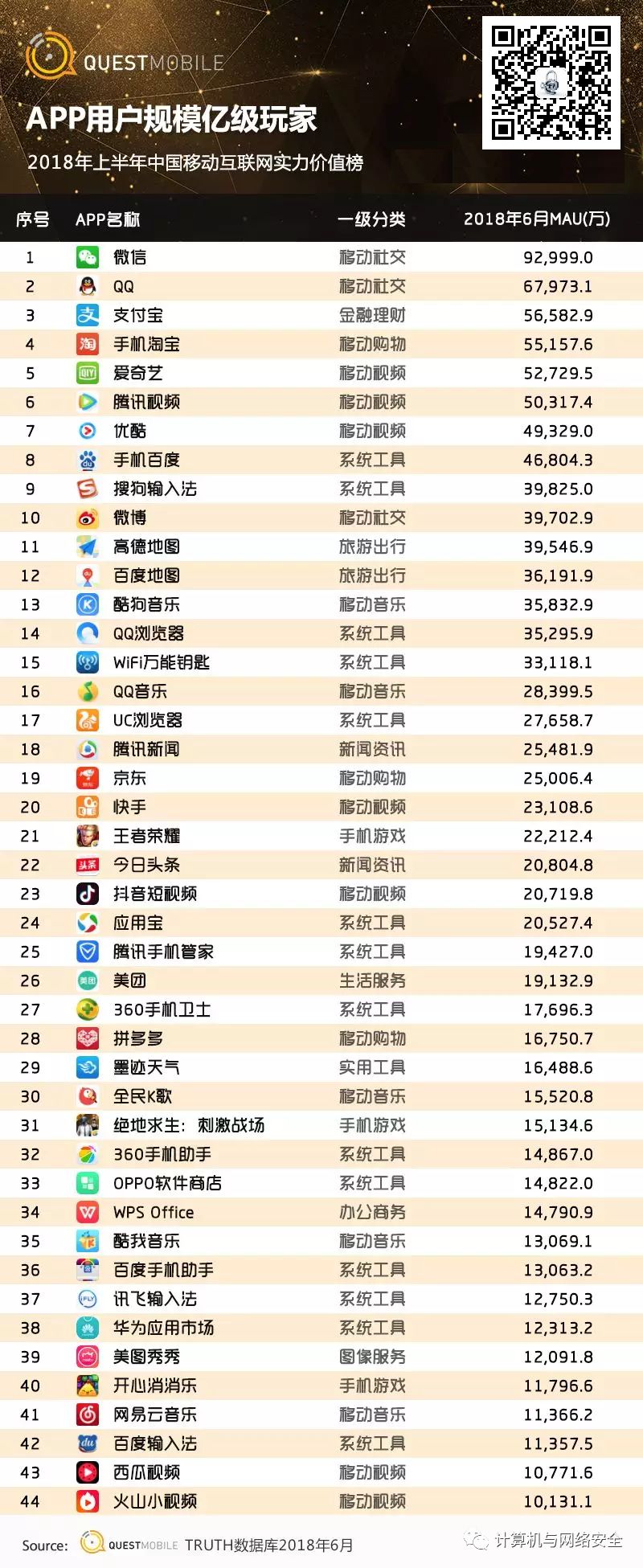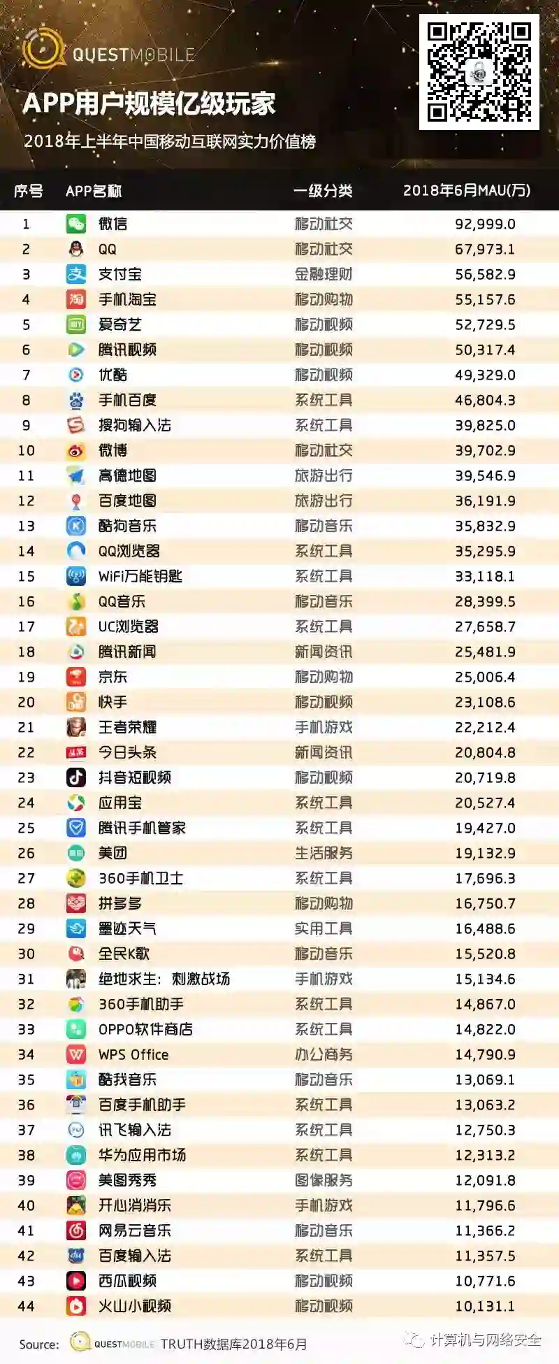 四、2018年上半年中国移动互联网实力价值榜