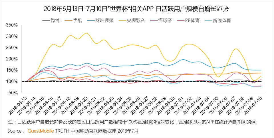 4.2 世界杯期间,赛事直播视频APP及体育资讯APP日活跃用户数均呈上涨趋势,官方视频APP和垂直类资讯APP涨幅更为显著