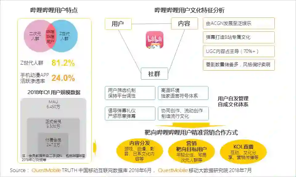 I、哔哩哔哩用户的文化特征显著,可成为靶向目标用户进行内容分发、文化社交类营销等精准营销合作平台