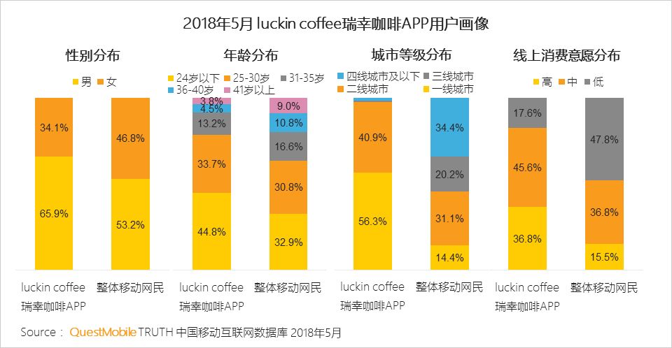 II、luckin coffee瑞幸咖啡APP主要覆盖一二线城市、偏年轻化用户