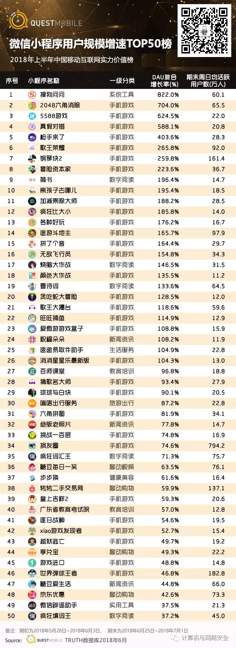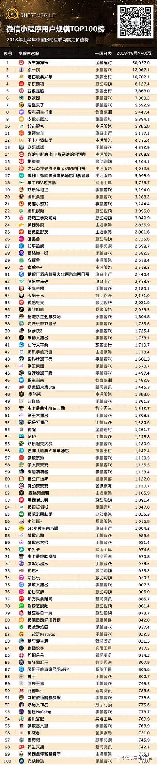 6、微信小程序用户规模TOP100榜