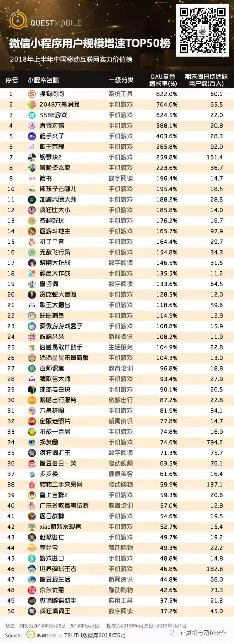 7、微信小程序用户规模增速TOP50榜