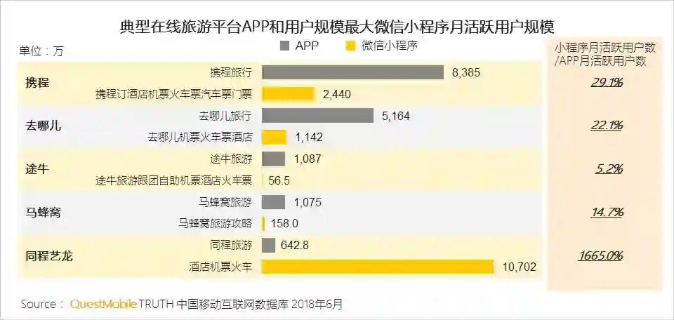 II、行业弯道超车机会或在小程序,同程艺龙借助微信入口形成过亿的小程序用户规模