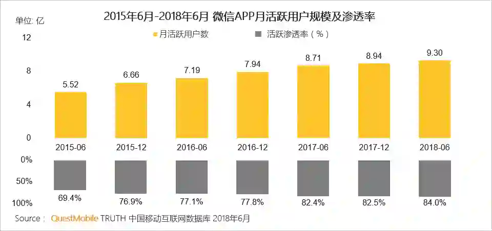 微信月活跃用户规模已达9.3亿;微信公众号数量超2,000万,月活跃帐号达350万,月活跃粉丝约8亿;微信小程序迅速发展,截止6月已有近100万个小程序,微信生态正在成为新的流量洼地吸引各路玩家进入。