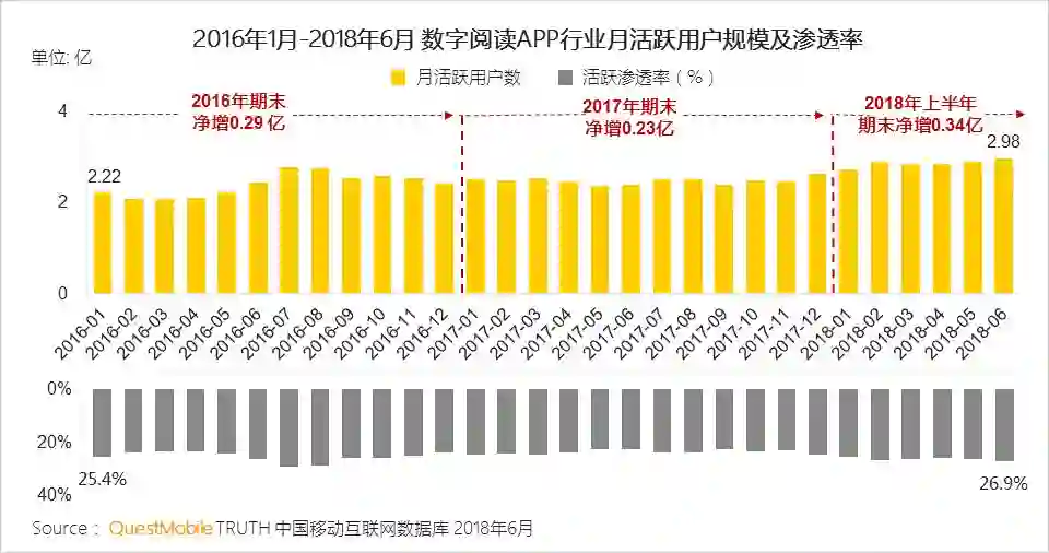 I、数字阅读行业迎来价值红利阶段,2018年上半年规模增长已超以往全年