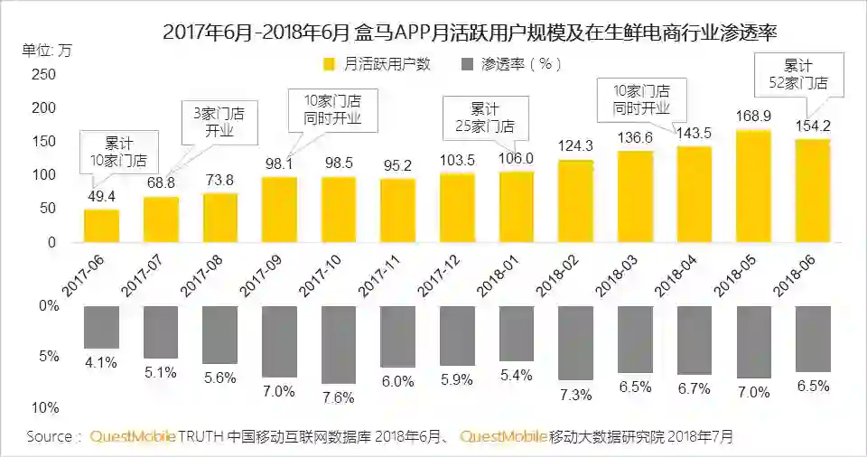 III、阿里表现同样强势,盒马鲜生门店扩张,盒马APP月活跃用户规模同比增长212%