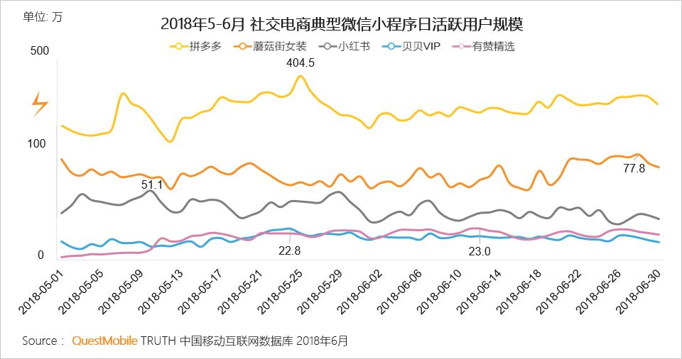 VI、拼多多战略调整、引导用户从小程序往APP迁移,目前小程序的日活仅为APP的5%;蘑菇街发力小程序直播,小程序用户规模已经达到APP的三分之一