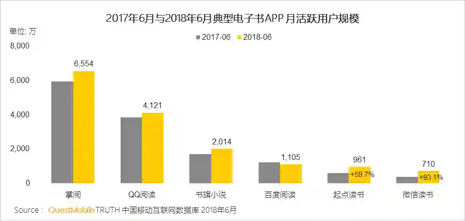 II、掌阅和QQ阅读同比增幅在10%左右,微信读书自带社交基因,同比增长93%