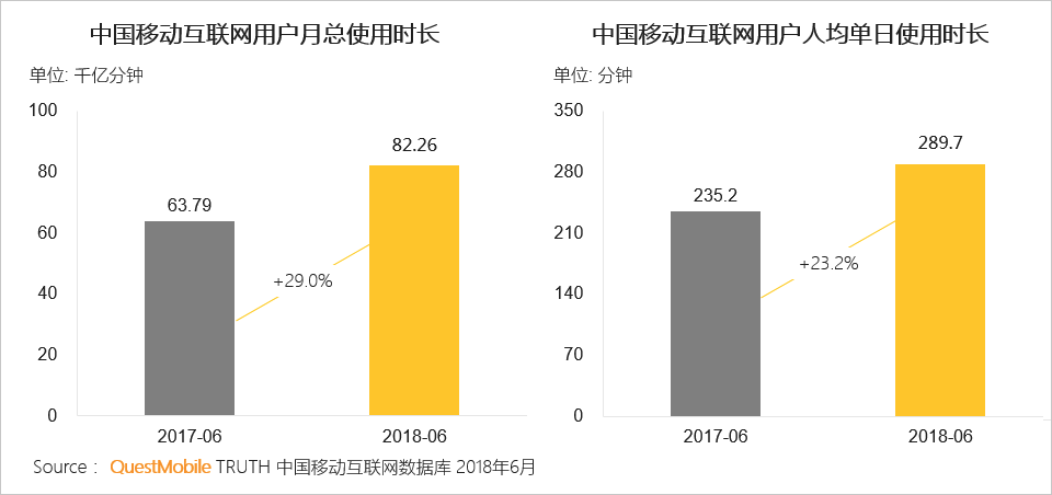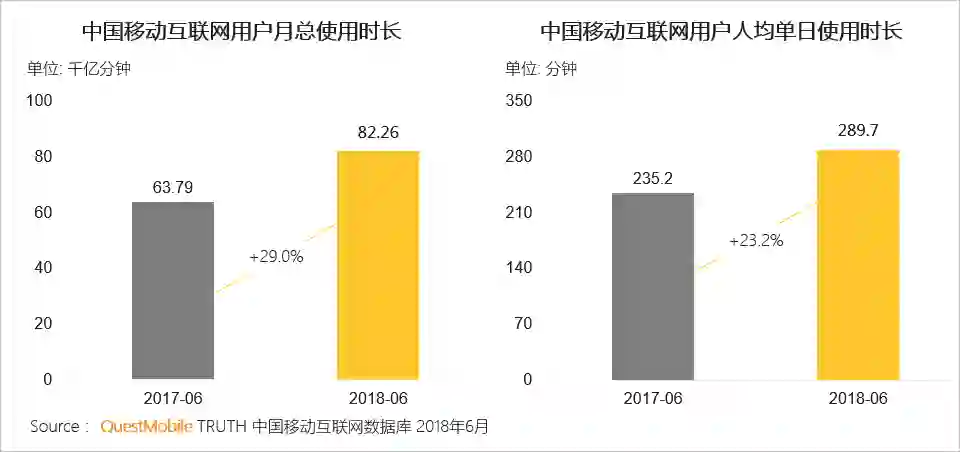 总体上看,2018年上半年,中国移动互联网用户仅增加了2千万人(基础总量是11亿),同时,人均单日APP使用时长已经接近5小时,由此就可以知道,存量厮杀会有多激烈;同时,核心流量依旧被牢牢占据在几个“超级入口”手中:社交的微信、购物的淘宝等。