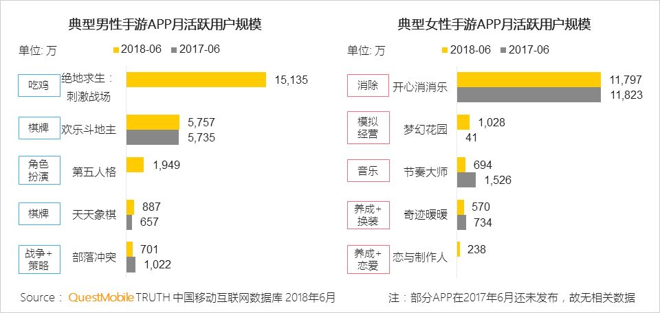 II、典型男性手游以竞技类、休闲类为主,典型女性手游以养成类、休闲类为主
