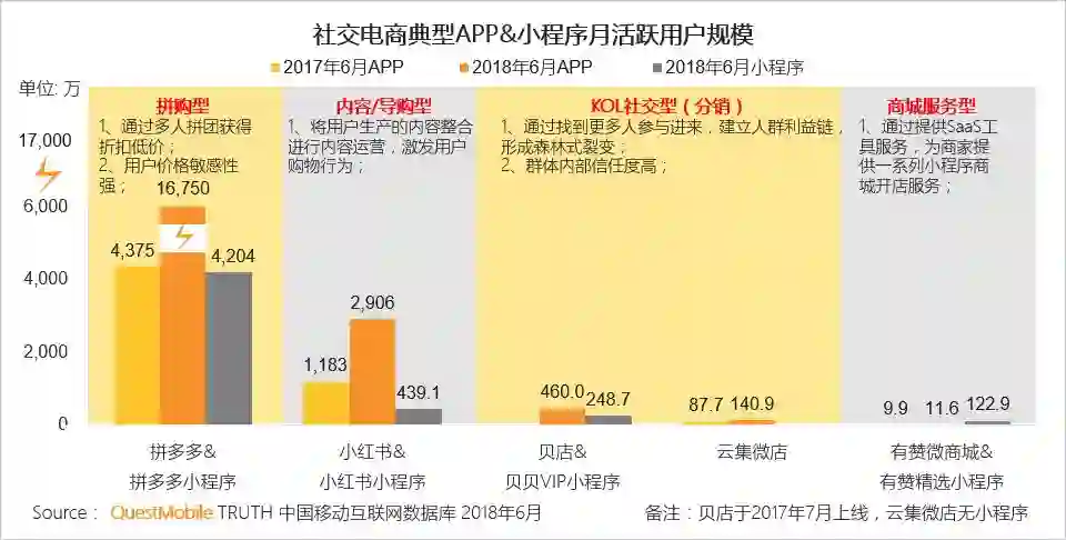 V、社交电商百花齐放,拼团模式、内容驱动、KOL社交等模式均得以高速发展