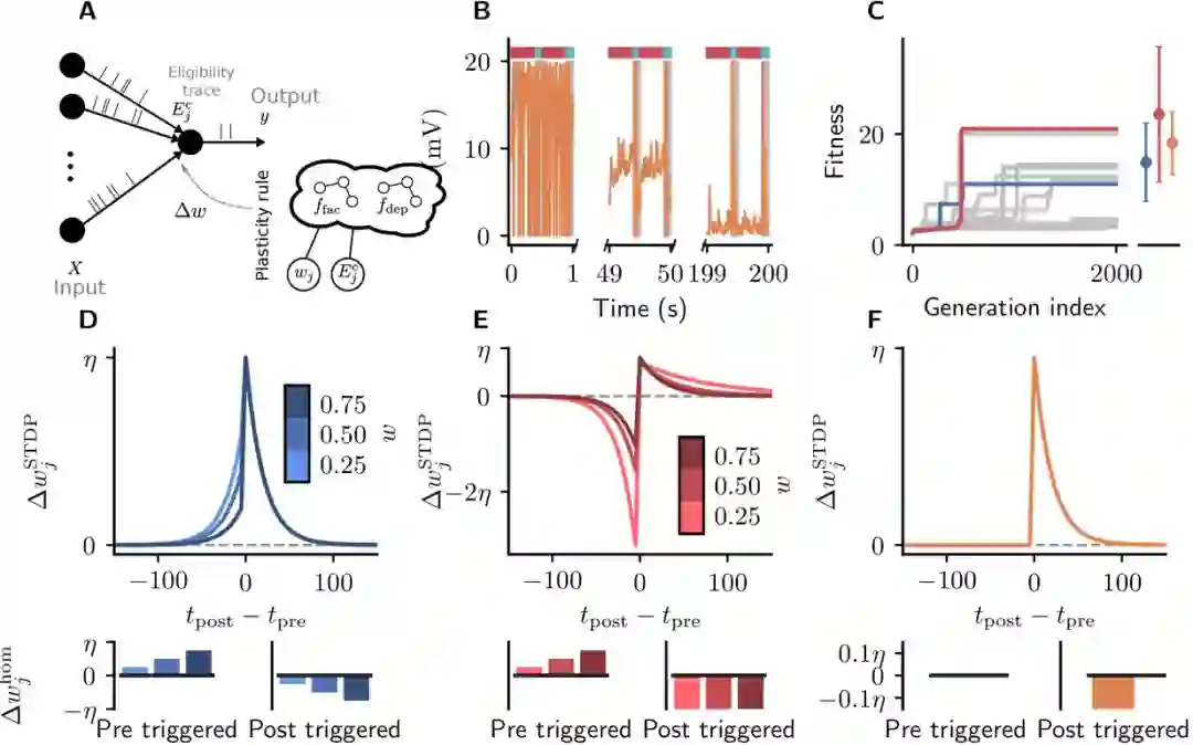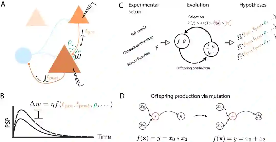 研究结果证明了自动化程序在搜索尖峰神经元网络的可塑性规则方面的巨大潜力,类似于从手工设计到现代机器学习核心的学习特征的转变。