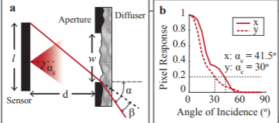 所谓的扩散器是一种凹凸不平的透明薄膜,当一个非相干光源离传感器足够远的时候,扩散器表面凹凸不平的结构会将光线按照一定方式透射,被传感器捕捉。