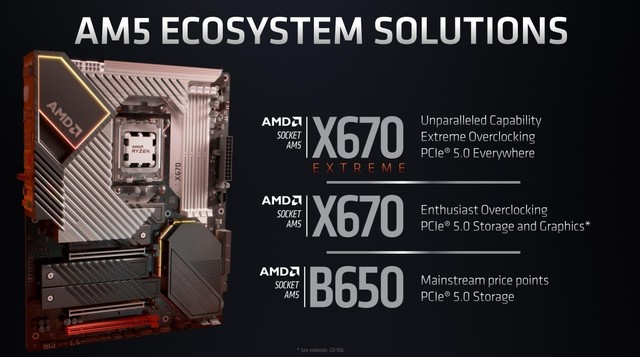 新的主板分为三种 X670 Extreme、X670 以及 B650。X670 Extreme 将面向极限超频爱好者,性能最强。X670 和 B650 也都会支持 PCIe 5.0。这些主板与锐龙 7000 处理器将会在今年秋季推出。