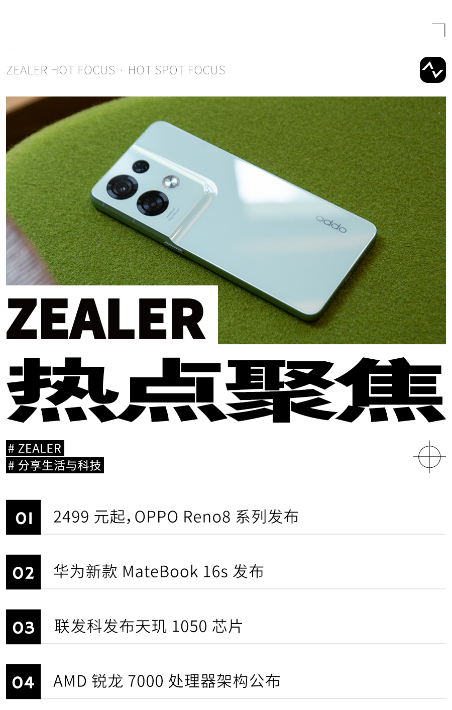 今晚 7 点,OPPO Reno8 系列正式发布,该系列有天玑 1300、骁龙 7 Gen 1 以及天玑 8100-Max 三个处理器版本,售价为 2499~3999 元。