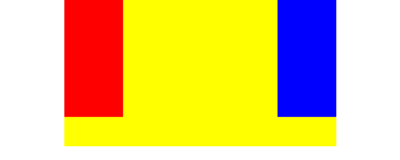 三个部分都设定为左浮动,否则左右两边内容上不去,就不可能与中间列同一行。然后设置center的宽度为100%(实现中间列内容自适应),此时,left和right部分会跳到下一行