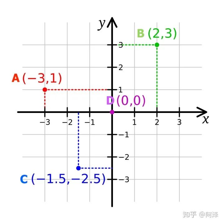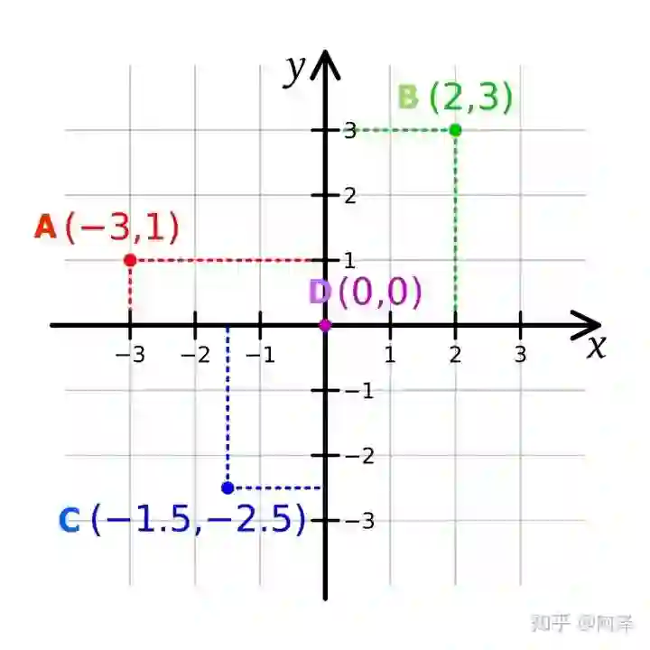 那么为什么可以这么表示呢?为什么 A 的坐标为 (-3,1) 而 B 的坐标为 (2,3) ?