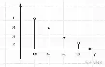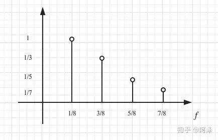 我们观察到,不同的振荡函数具有不同的振幅和频率,以上图为例 的振幅为 1/3 而频率为 ,考虑以频率为横坐标,振幅为纵坐标,我们有: