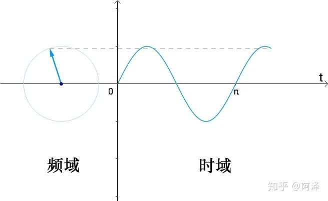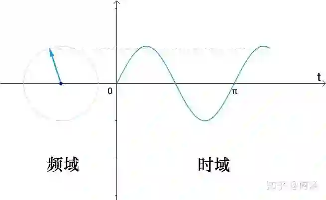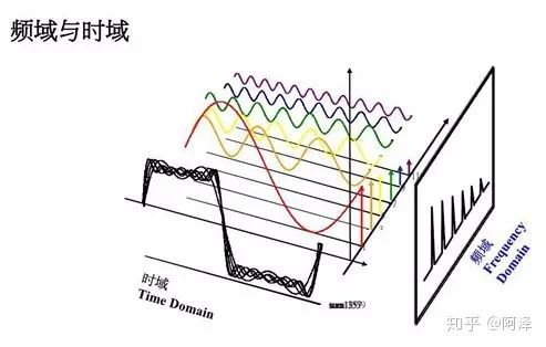 左边图是我们看到的旋转频率,称为频域,而右边图看到是时间流逝,称为时域,是不是和我们刚刚介绍的(从时域变换到频域)正好相反?也就是说,时域和频域其实是可以相互转换的。