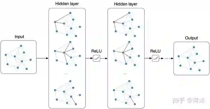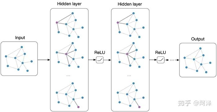 图卷积神经网络是指在图结构中做卷积操作的神经网络,所以其输入输出的都是图结构,区别于传统的神经网络结构,其隐藏层是直接在图结构中进行激活: