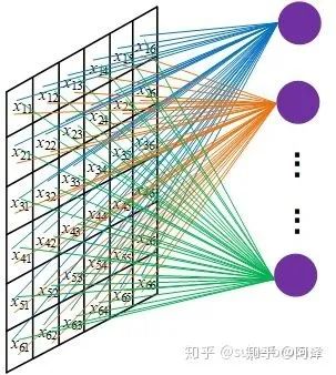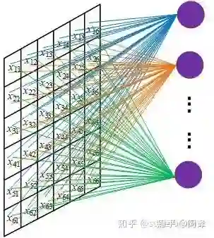 除此之外,卷积神经网络还有另一大核心:「局部连接性(Locally Connection)」。局部连接是指卷积计算每次只在与卷积核大小对应的区域进行,也就是说输入和输出是局部连接的。如果不进行局部连接的话,相当于将图片的矩阵展开成向量进行输入,类似于全连接神经网络,此时的参数量会变得非常巨大: