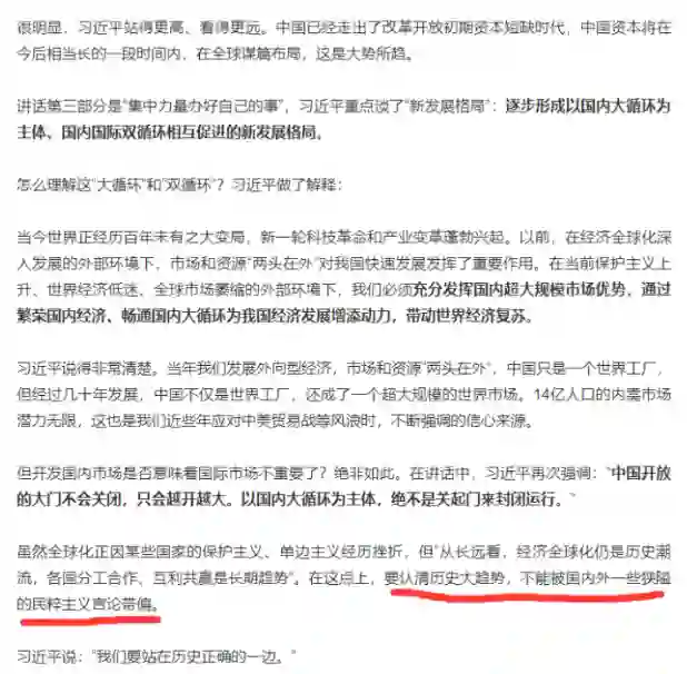 “要认清历史大趋势,不能被国内外一些狭隘的民粹主义言论带偏。”