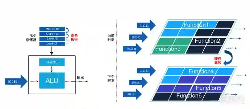 它是一种非冯·诺依曼架构,简单而言,就是将软件通过不同的管道输送到硬件中来执行功能,使得芯片能够实时地根据软件/产品的需求改变功能,实现更加灵活的芯片设计。
