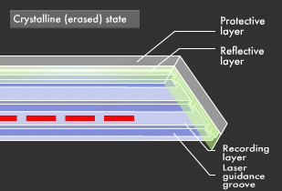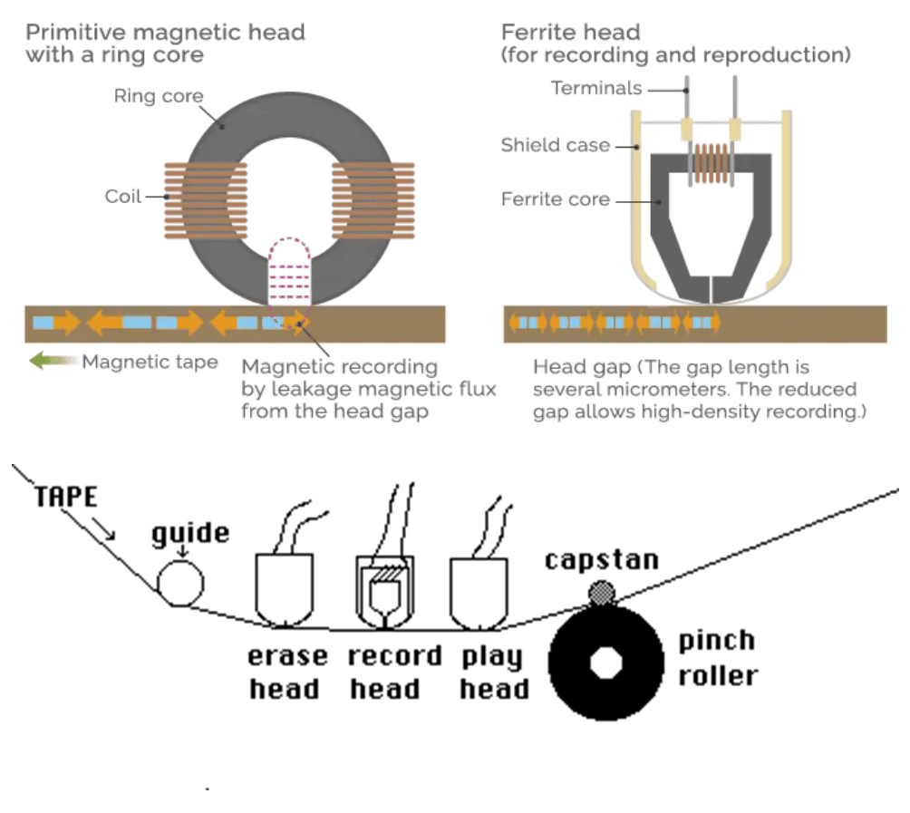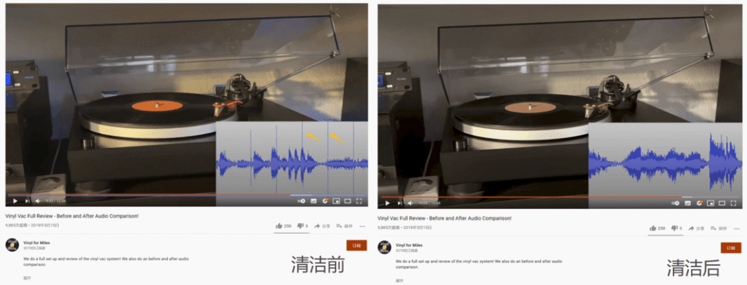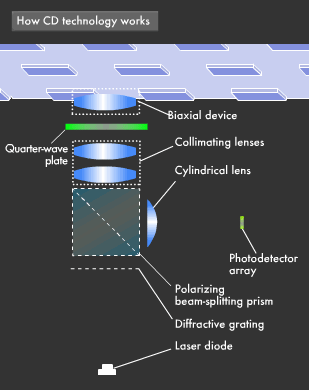 保存声音:录制机器使用各种方法(振膜传递振动等)驱动一个录音头(就相当于一个小刻刀),录音头在平滑的旋转乙烯基盘片上根据声波振动不同左右震动,刻出一道道深浅不一的同心圆凹槽,直接代表连续的声音变化,凹槽左右边的不同波浪就代表了左右声道的声音变化。