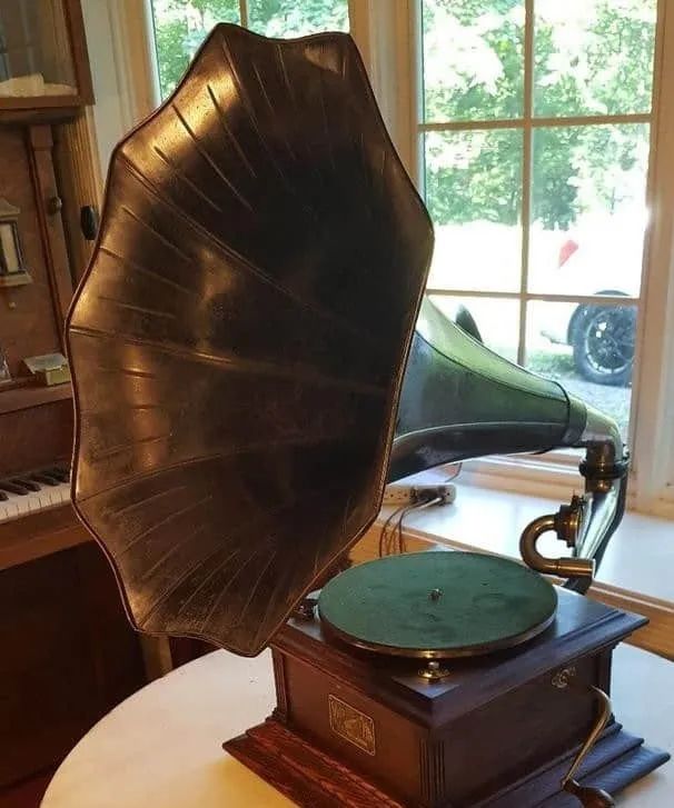 读取声音信息:唱头上面的针用一定的压力压在唱片的特定位置上,同心圆凹槽左右两边不同的起伏,会让整个唱臂左右摇摆不同的幅度,唱臂里面的电磁铁就会产生不同的电流,放大器放大声音信号并驱动喇叭发出声音。