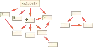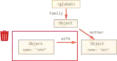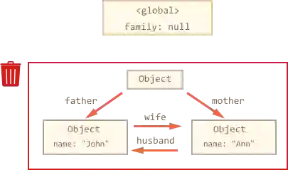 前面说的 “family” 对象已经不再连着根,再也没有引用,所以它将变成一座『孤岛』并且将被移除。
