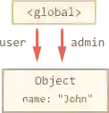 现在让我们想象下,我们把 user 的引用复制给 admin: